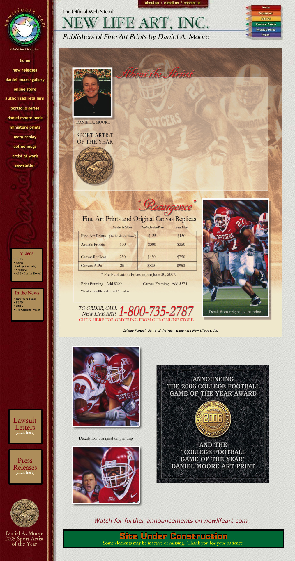 Artist Daniel A. Moore has been documenting great moments in sports on canvas since 1979, when he released his first limited edition fine art print entitled, "The Goal Line Stand". The painting commemorated Alabama's great defensive stand against Penn State in the Sugar Bowl to clinch the 1978 National Championship. These prints quickly became collectors' items and have appreciated by well over 5000% in value, currently selling for upwards of $2500 each on the secondary market.